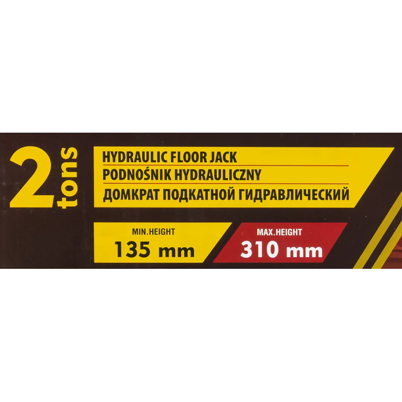 Благодаря предохранительному клапану домкрат соответствует стандарту безопасности. Грузоподъемность 2 тонны. Минимальная высота подъема 135 мм. Максимальная высота подъема 310 мм.