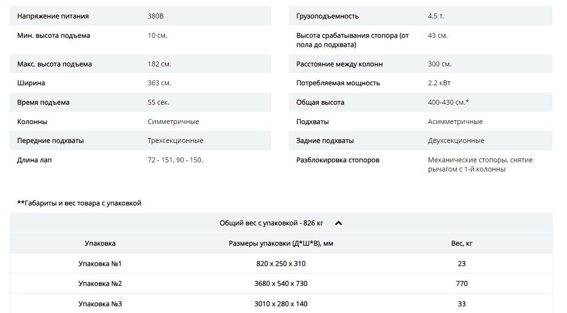 Подъемник NORDBERG N4124HM-4,5G 380V 2х стоечный с верхней синхрониз. г/п 4,5т