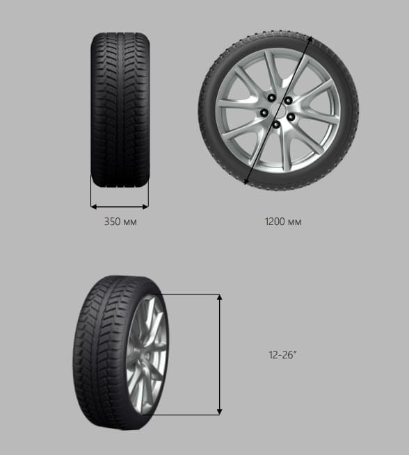 демонтажа шин автомобилей с посадочным диаметром дисков от 12” до 26”.