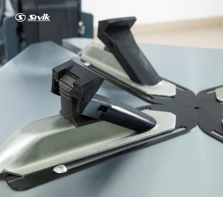 Стенд оснащен двухскоростным столом (ПЕРЕКЛЮЧЕНИЕ ПЕДАЛЬЮ). Цилиндр отрыва борта одностороннего действия с возвратной пружиной существенно увеличивает скорость отрыва борта. По характеристикам размер рабочего пространства отжимной лопатки позволяют эффективно работать с большими и широкими колесами.