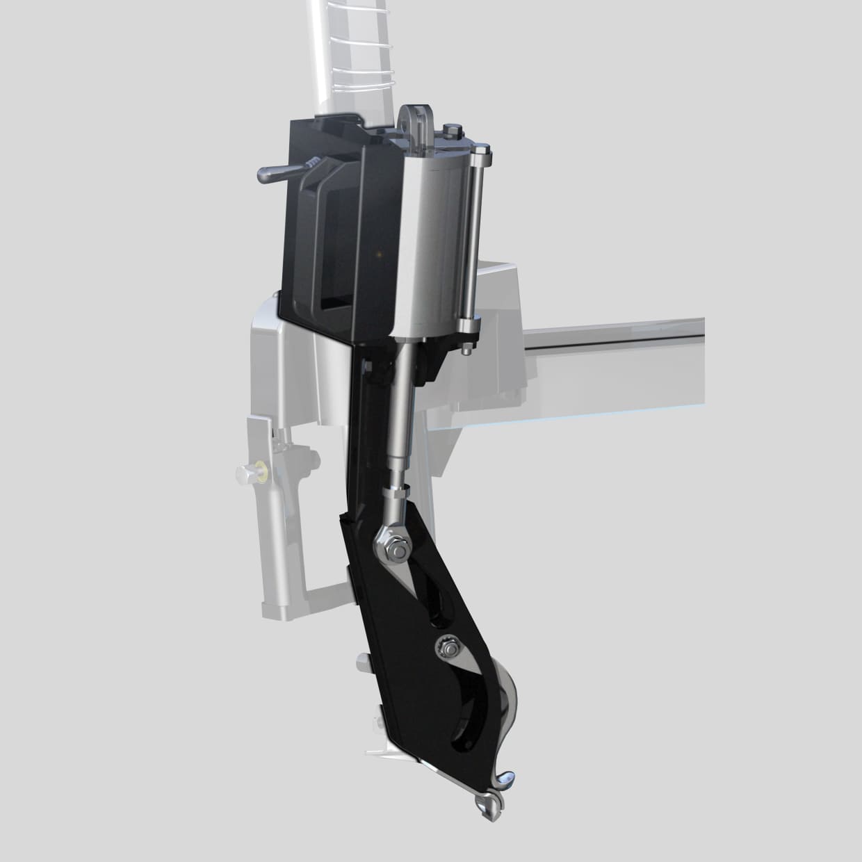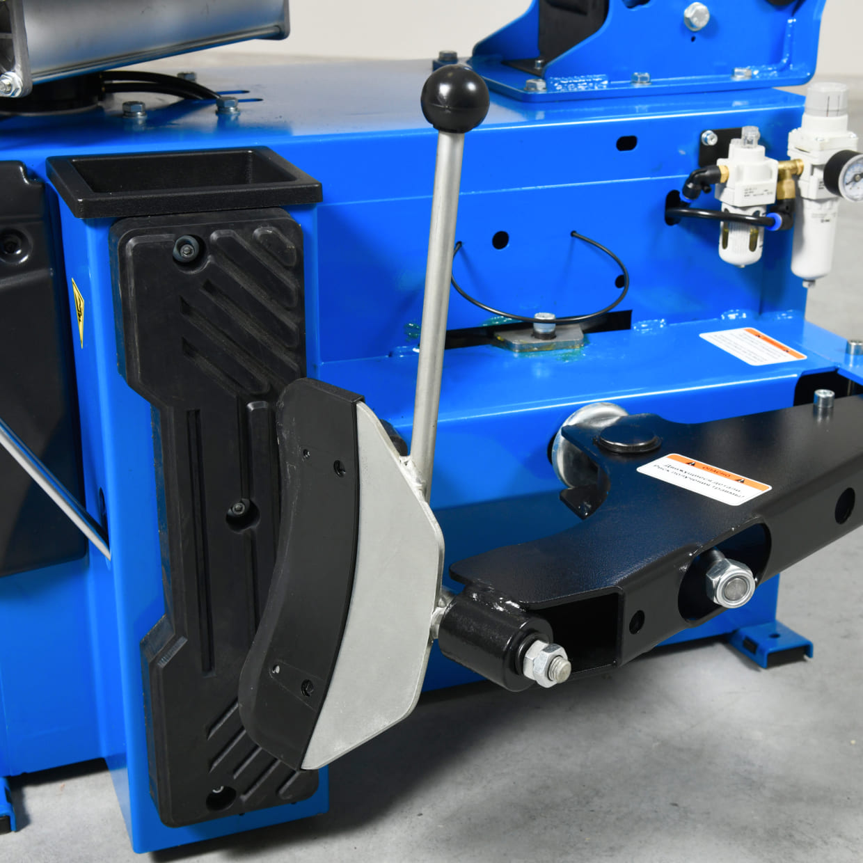 Диаметр цилиндра 200 мм позволяет развивать усилие свыше 3 т на лопатке отжима борта, что обеспечивает уверенный отжим прикипевших шин и шин с жесткой боковиной (включая RUNFLAT).