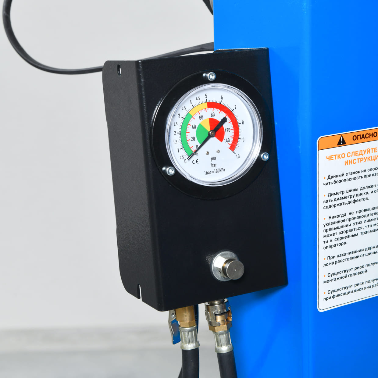 Шиномонтажный станок КС-402А ПРО оснащен стационарным блоком подкачки.